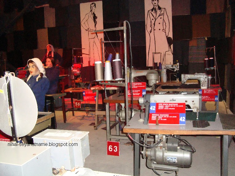 Bu odaları geçtikten sonra konfeksiyon bölümü geliyor.Bu bölümde kumaştan elbise oluncaya kadarki aşamalar gösterilmekte.Dikiş makineleri ve ütü çeşitleri de maketler eşliğinde sunulmakta. Ayrıca duvarlarda kumaş kartelaları da var.